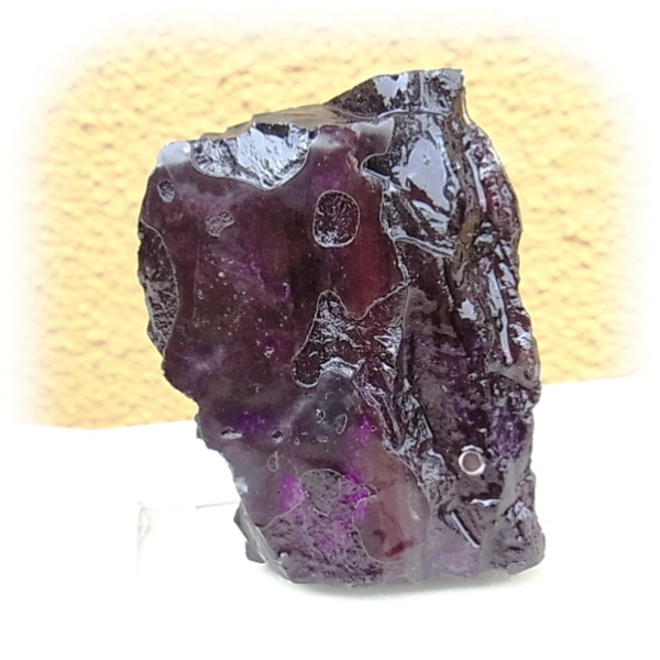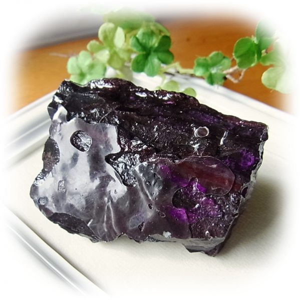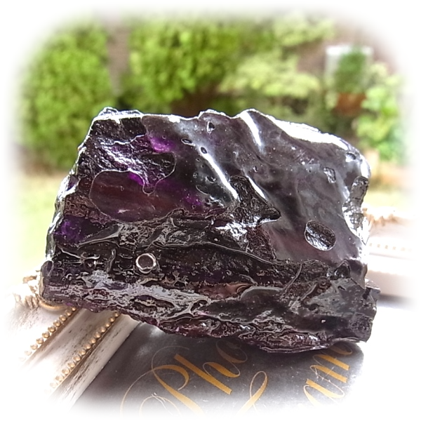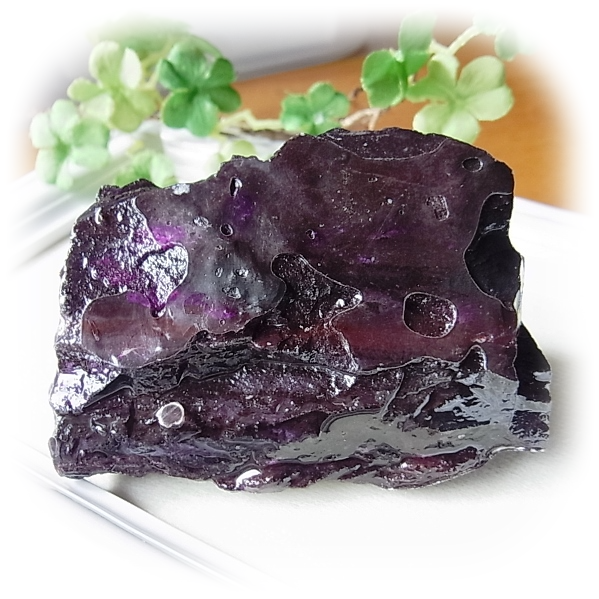 太陽光や電色での強い光を当てますと、画像のように、神秘的な紫赤(パープルピンク)の色合いが鮮明に映し出され、世界3大ヒーリングストーンとしての圧巻の存在感を示すに相応しい光景です。