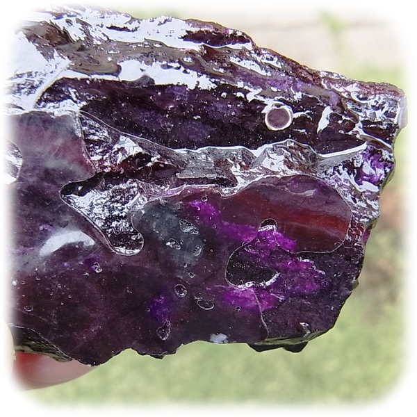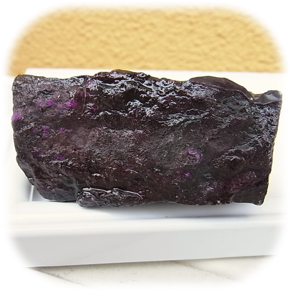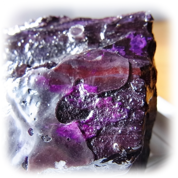こちらは、天然原石そのままの面です。母岩もなく石全体がほぼスギライトの結晶であることがわかります。